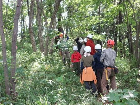 自然観察の後は、健全な森づくりのために、皆で竹伐採を行いました。
