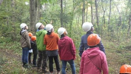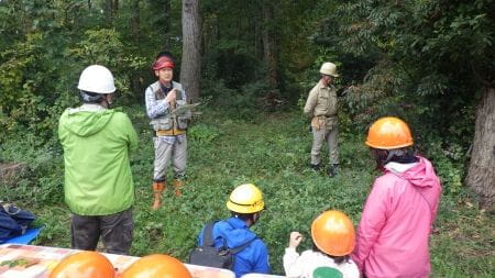 活動の前に、講師の方から、海道緑地保全地域での萌芽更新の実例を、写真を使いながらご説明してもらいます!