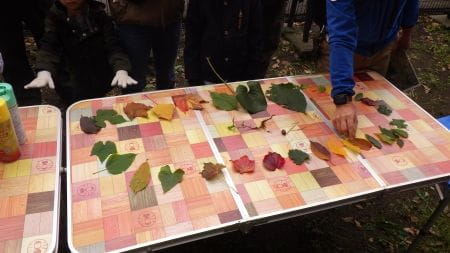 講師の方からは、自然観察の間に好きな葉っぱを2枚拾うように指示がありました。