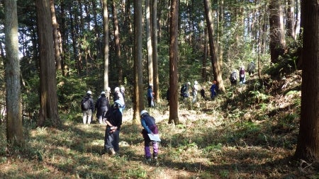 講師の方から勝沼城跡歴史環境保全地域の自然や地形、歴史について教えていただきながら、散策します。