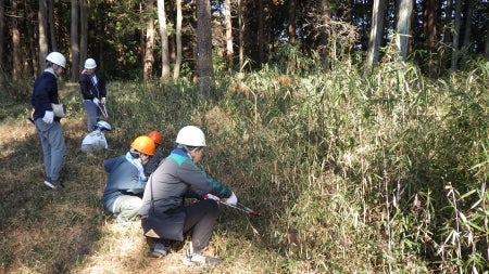 春にたくさんの植物が生育するように、できるだけ地面の近くからササを刈っていきます!