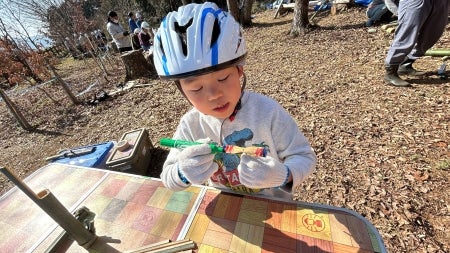 午前中に保全活動で切った竹を使って、竹トンボや小物入れなど、みなさん個性豊かなものを作っています♪